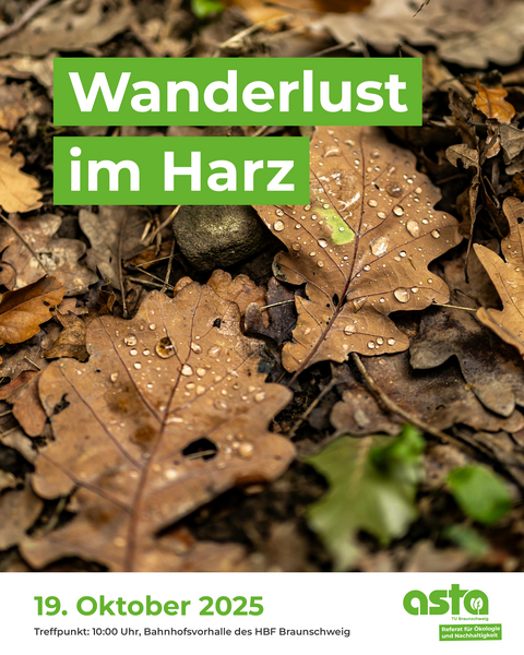 Am 19.10.2025 lädt das Ökologiereferat der TU Braunschweig zu einer gemeinsamen Wanderung in Bad Harzburg ein!