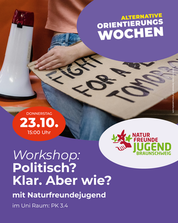 Warum, Wo und Wie politisch aktiv werden? - Wir stellen die AO-Woche, verschiedene Aktionsformen und politische Gruppen in Braunschweig vor. Danach könnt ihr euch an verschiedenen Essens- oder Infoständen weiter informieren und Gleichgesinnte kennenlernen!