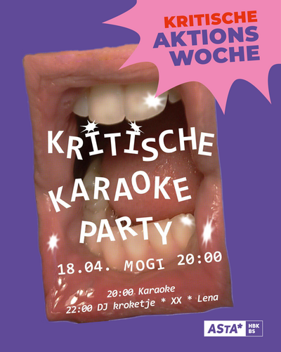 Das Ende der Kritischen Aktionswoche feiern wir mit der Kritischen Karaoke Party! Ab 20 Uhr dürft ihr eure Lieblingshits schmettern, danach heizen euch DJ kroketje, iden und legner ein.